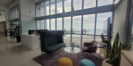 „Unser Büro in Singapur hat eine Sache, die alle anderen nicht haben: Meerblick. Wann immer Gäste hereinspazieren, sind sie erst einmal fasziniert von der Sicht auf die riesigen Schiffe und das südchinesische Meer. Wenn mehrere der 15 Kolleg*innen vor Ort sind, steigt schnell der Lach-Lautstärkepegel. Wer vor oder nach dem Arbeiten noch eine Erfrischung braucht, springt einfach in den Pool oder Jacuzzi.“
