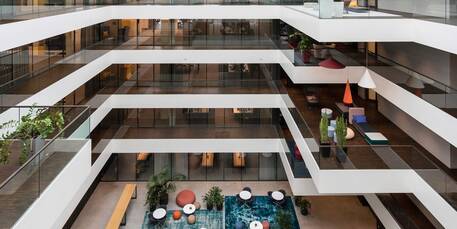 "Das HQ in Stuttgart verkörpert für mich unsere AEB-Kultur: Das riesige Atrium = die Offenheit. Die bunten Sitzecken = den Austausch unter Kolleg*innen. Die Rundum-Verglasung = die Transparenz. Die freie Platzwahl = die Augenhöhe. Für jede Art von Arbeit gibt es passende Räume: Kreativarbeit, Stillarbeit, Teamarbeit, Arbeiten mit Kind oder Arbeiten an der eigenen Gesundheit. Beim Vorbeilaufen wird man mit einem Lächeln begrüßt und beim Mittagessen kommen stets verschiedene Gruppen zusammen und genießen gemeinsam die Köstlichkeiten unseres preisgekrönten Kantinos."