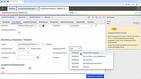 Manuelle Erstellung von elektronischen Ausfuhranmeldungen mithilfe einer intelligenten Assistentenfunktion und Plausibilitätsprüfungen