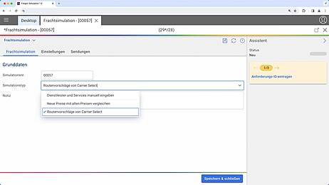 Berechnung und Vergleich von Frachtkosten mit manuell vorgegebenen Transportdienstleistern und Services für ein bestimmtes Datum