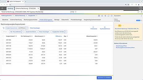 In der Rechnungskontrolle erkennen Sie Abweichungen Ihrer Kalkulationen gegenüber den Frachtkostenrechnungen der Dienstleister und können diese detailliert überprüfen.